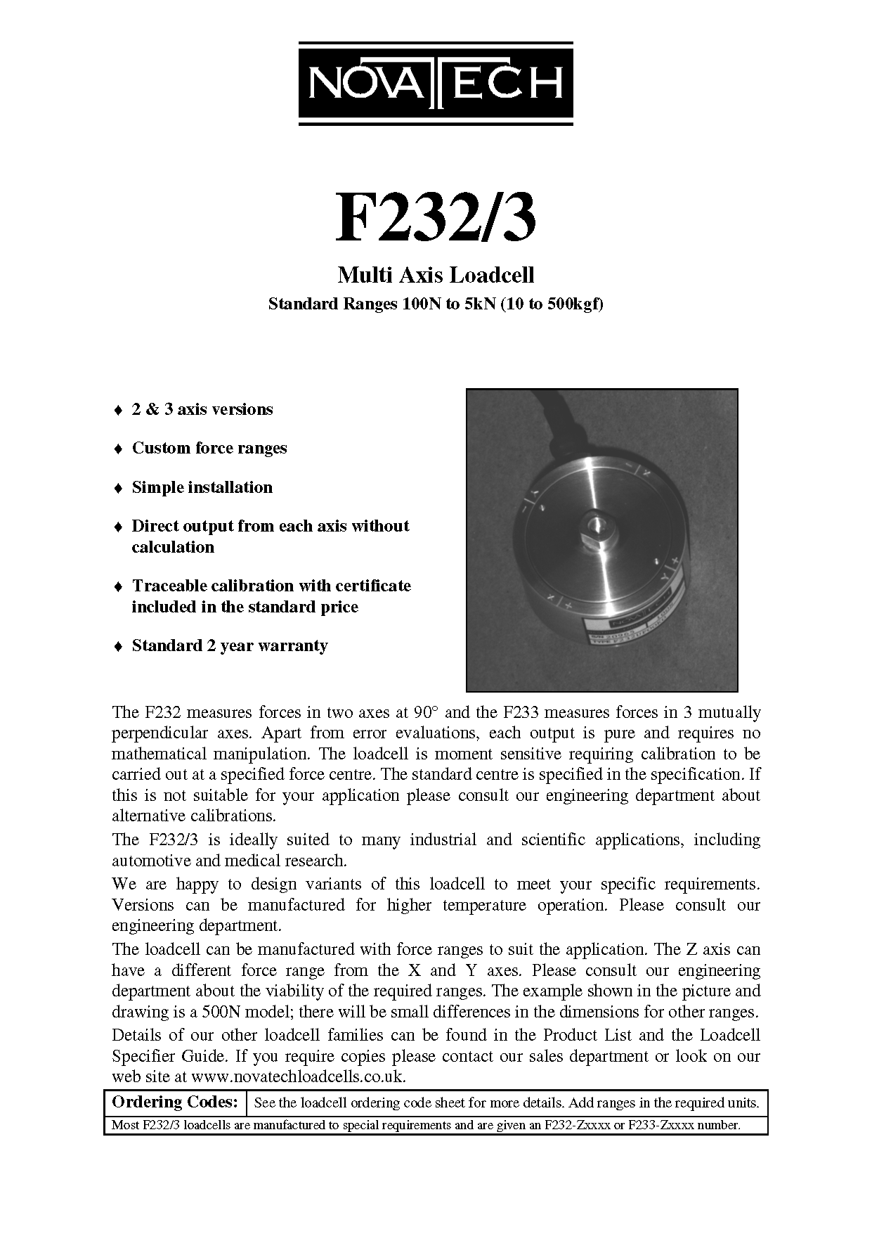 美國NOVATECH F232/3多分力傳感器