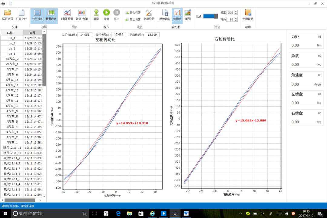 耐創測試的轉向性能測試設備:可以適用于乘用車或商用車,測試汽車方向盤動態或靜態狀態下的力矩和轉角,角速度,同時可擴展乘用車或商用車的數字車輪滑盤,同滑盤電子信號集成,大幅度提高了轉向傳動比試驗效率,從而進行力矩波動, 轉向剛度、干摩擦、轉向行程、最大轉向力,轉彎半徑,車輪最大轉向角等各性能測試。該設備既可以通過計算機作為獨立的測試系統,用來測試轉向系統性能,也可以集成到其他數據采集儀,用來測試整車性能。